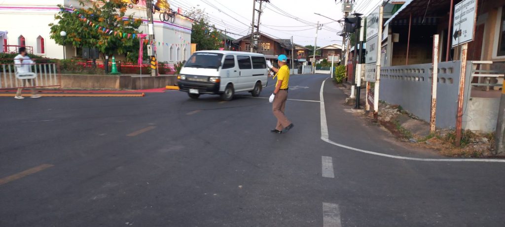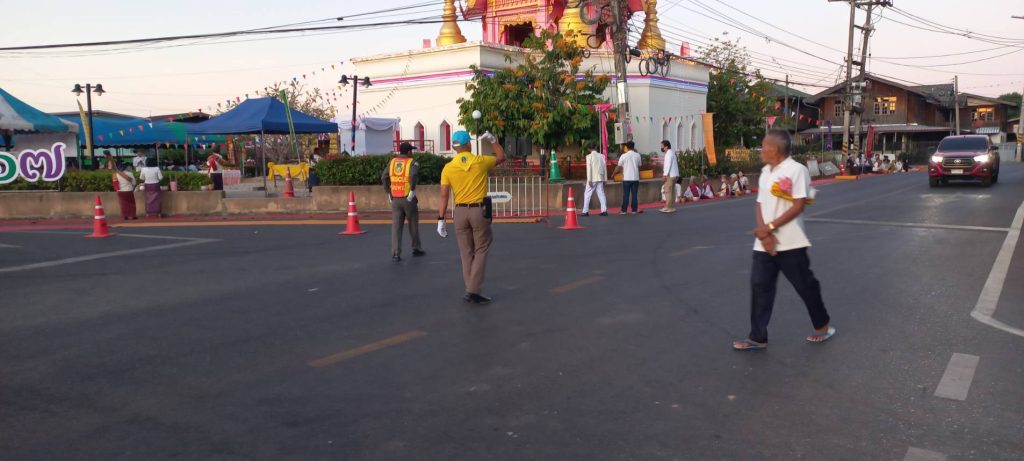 ทำกิจกรรมจิตอาสาพัฒนา จัดการจราจร เพื่ออำนวยความสะดวกให้แก่ข้าราชการ พ่อค้า ประชาชนที่มาร่วมงานทำบุญตักบาตร บริเวณศาลหลักเมือง ต.พนา อ.พนา จ.อำนาจเจริญ