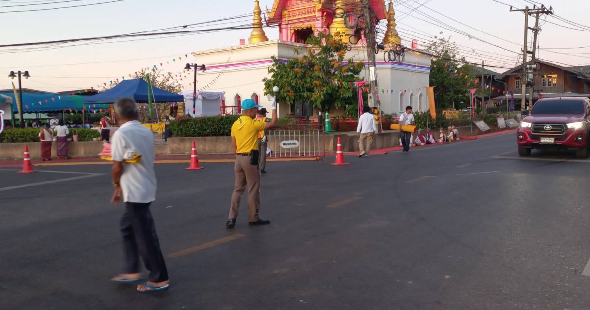 ทำกิจกรรมจิตอาสาพัฒนา จัดการจราจร เพื่ออำนวยความสะดวกให้แก่ข้าราชการ พ่อค้า ประชาชนที่มาร่วมงานทำบุญตักบาตร บริเวณศาลหลักเมือง ต.พนา อ.พนา จ.อำนาจเจริญ