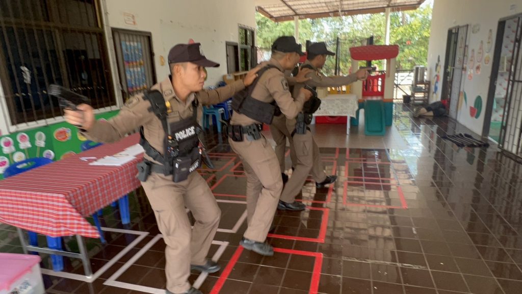 ทำการซักซ้อมแผนเผชิญเหตุกราดยิง(Active Shooter) บริเวณศูนย์พัฒนาเด็กเล็กบ้านนาสะแบง ต.พระเหลา อ.พนา จ.อำนาจเจริญ