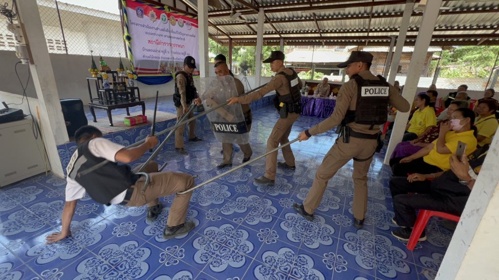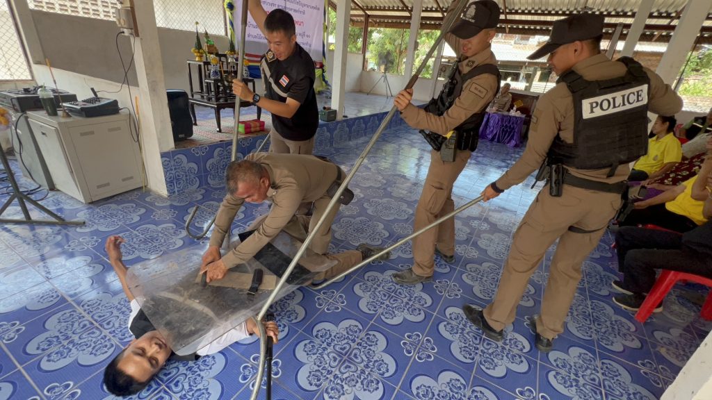 ทำการถ่ายทอดความรู้ การใช้ไม้ง่ามระงับเหตุบุคคลคลุ้มคลั่ง ให้กับภาคีเครือข่ายชุมชนบ้านดอนม่วง ม.๖ ต.ไม้กลอน และภาคีเครือข่ายชุมชนบ้านถ่อน ม.๑๐ ต.ไม้กลอน ณ ศาลาประชาคม ม.๖ บ.ดอนม่วง ต.ไม้กลอน อ.พนา จ.อำนาจเจริญ