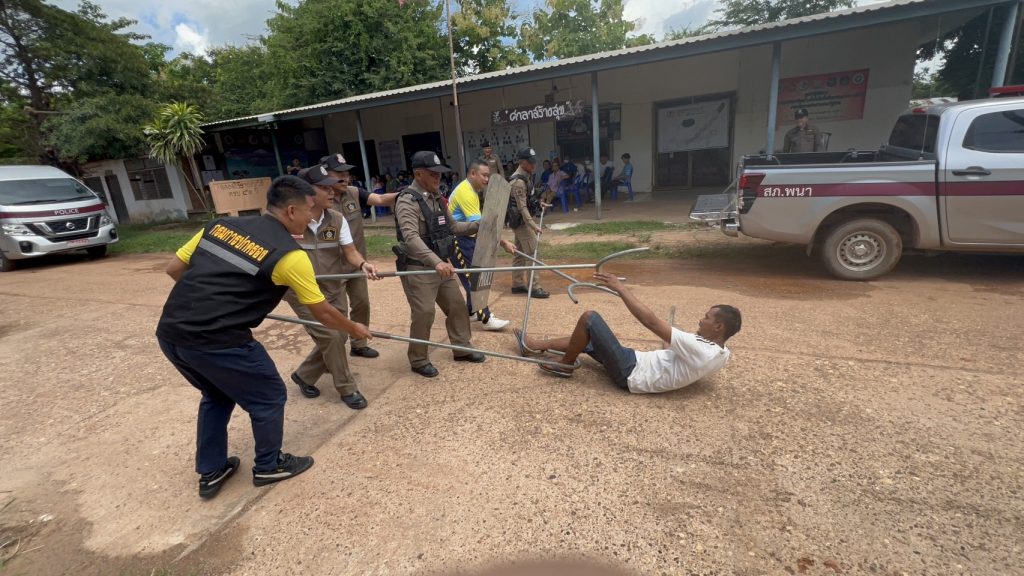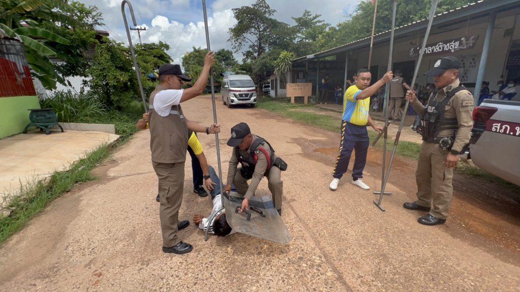 วันนี้ (๔ ต.ค.๖๗) เวลา ๑๓.๐๐ น. ภายใต้การอำนวยการของ พ.ต.อ.คมเพชร ศรีเมืองคุณ ผกก.สภ.พนา,พ.ต.ท.เกรียงไกร กุญชร รอง ผกก.ป.สภ.พนา,พ.ต.ท.พิศาล ศุภโกศล สวป.สภ.พนา มอบหมายให้ข้าราชการตำรวจชุดชุมชนบำบัดยั่งยืน,ร้อยเวร ๒๐,สายตรวจรถยนต์, ทำการถ่ายทอดความรู้ ฝึกการใช้ไม้ง่ามระงับเหตุบุคคลคลุ้มคลั่งให้กับ ชุมชนบ้านโนนธาตุ ม.๕ ต.พนา อ.พนา จ.อำนาจเจริญ