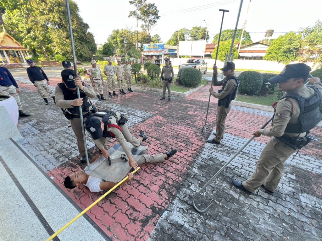 ทำการถ่ายทอดความรู้ การใช้ไม้ง่ามระงับเหตุบุคคลคลุ้มคลั่ง ให้กับฝ่ายปกครอง อ.พนา จว.อำนาจเจริญ