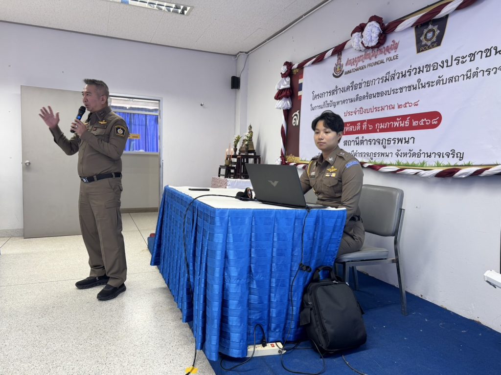 วันนี้ (๖ ก.พ.๖๘) เวลา ๑๑.๐๐ น. พล.ต.ต.นิพล บุญเกิด ผบก.สอท.๒ รรท.ผบก.ภ.จว.อำนาจเจริญ ได้มาตรวจเยี่ยม เป็นประธานเปิดการอบรมโครงการสร้างเครือข่ายการมีส่วนร่วมของประชาชนในการป้องกันอาชญากรรมระดับตำบล ณ ห้องประชุม ชั้น ๓ สภ.พนา