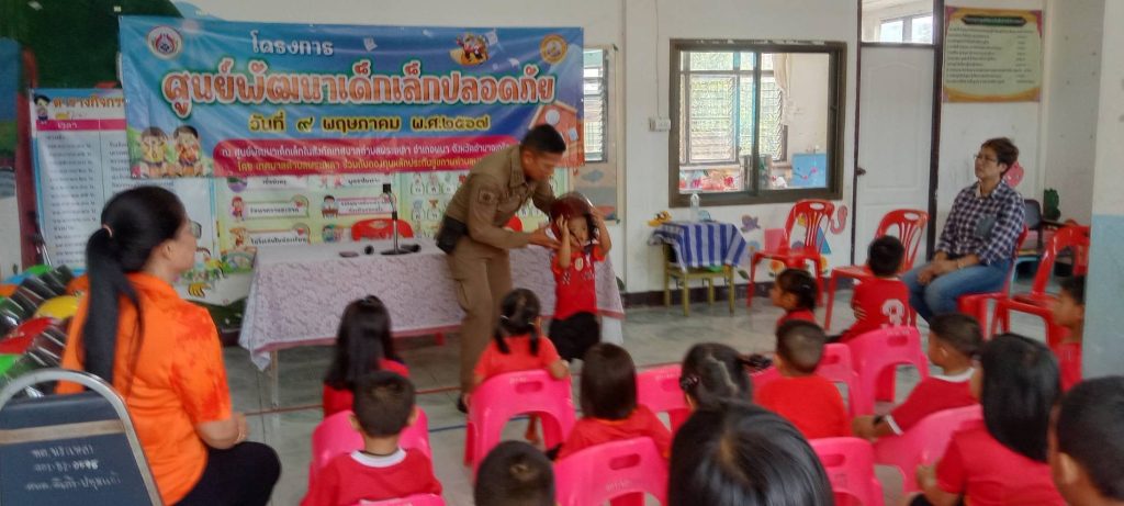 “หนี ซ่อน สู้” โครงการ ศูนย์พัฒนาเด็กเล็กปลอดภัย ณ ศูนย์พัฒนาเด็กเล็กบ้านอีเก้ง-ปทุมแก้ว ม.4 ต.พระเหลา