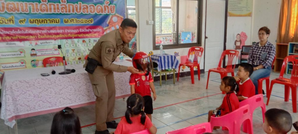 เวลาประมาณ 09.00 น. ร.ต.ท.สิทธิชัย เพ็งประโคน รอง สว.(ป.) สภ.พนา ปฎิบัติหน้าที่ ร้อยเวรป้องกันปราบปราม สายตรวจ จยย. ว.4 ร่วมเป็นวิทยากรให้ความรู้เกี่ยวกับวินัยจราจร และวิธีการเอาตัวรอดเมื่อเจอเหตุร้ายในศูนย์พัฒนาเด็กเล็ก