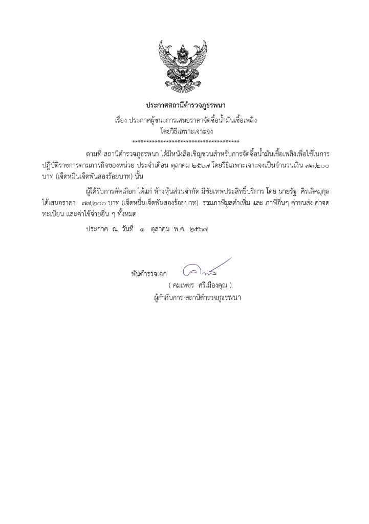 ประกาศจัดซื้อ จัดจ้าง เดือน ตุลาคม 2567