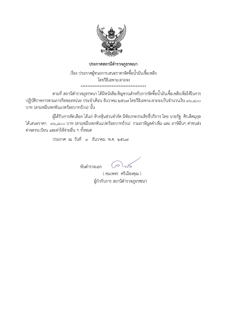 ประกาศจัดซื้อ จัดจ้าง เดือน ธันวาคม 2567