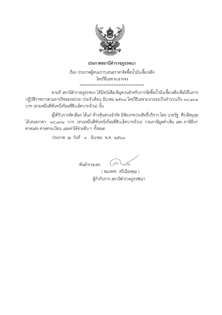 ประกาศจัดซื้อ จัดจ้าง เดือน มีนาคม 2568